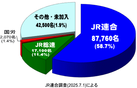1987年4月1日に「国鉄」が分割・民営化され「JR」がスタートして38年が経過しました。私たちは、自由にして民主的な労働組合を標榜し、JR産業で働く労働者が将来にわたり明るい展望を持てるよう、JR産業の発展につながる様々な取り組みを展開してきました。現在ではグループ88単組を含めた96単組が結集し、組織数87,000人を擁する名実ともにJRを代表する産業別労働組合に成長しています。しかし、JR産業にはJR連合に結集していない多くの仲間が、JR各社やグループ会社、関係会社に存在しているのも事実です。