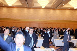 その後、岡本特別執行委員(青年・女性委員会議長)が委員会宣言を高らかに読み上げて提起し、満場の拍手で承認され、最後に松岡会長の団結ガンバローで閉会した。